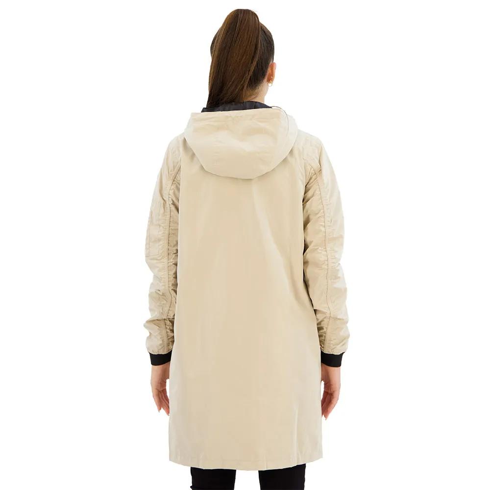 The jacket is made of a peached fabric with Poray 5000 and it has a soft inner lining, making it supple and comfortable to wear.