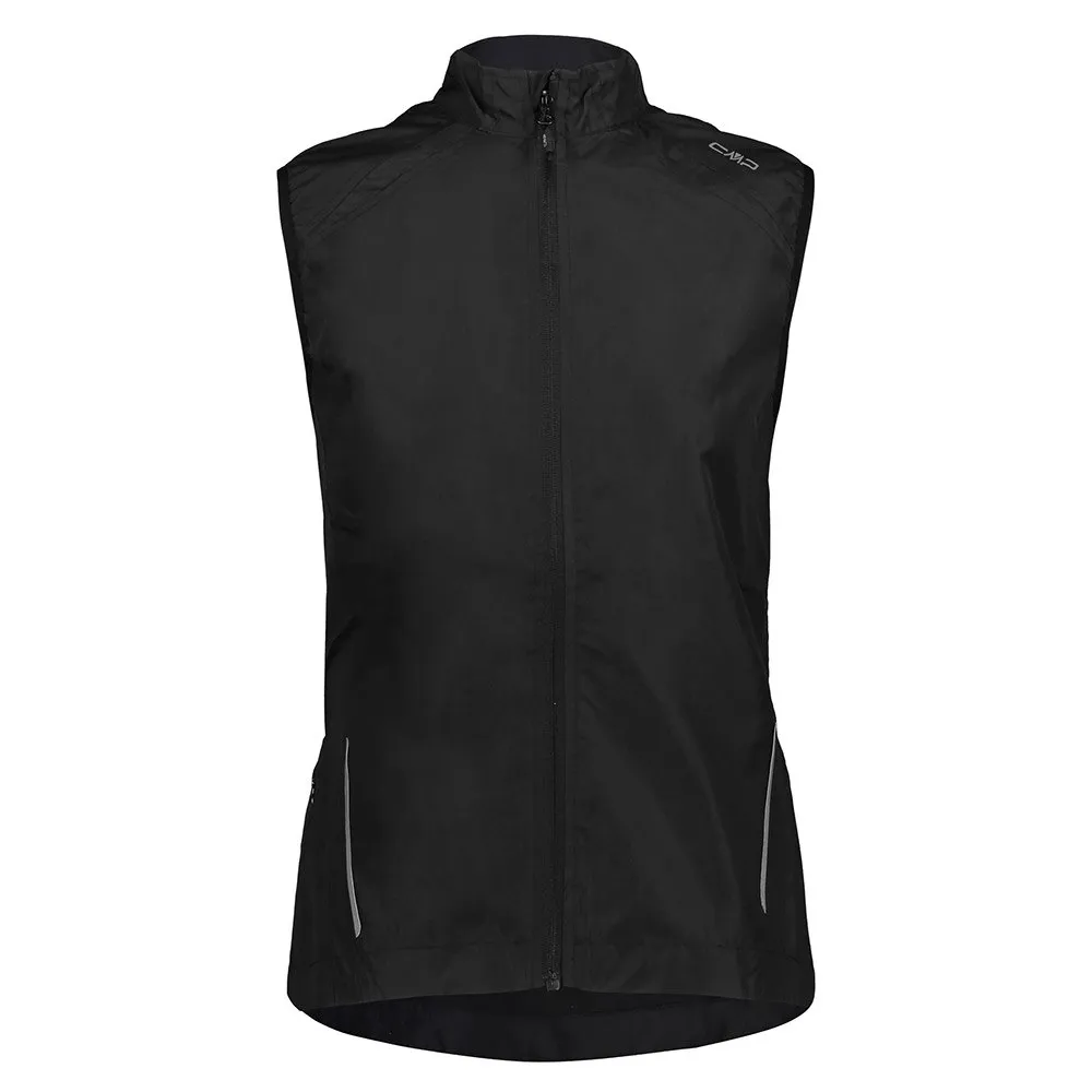 Windproof vest with reflective details, elastic at the bottom and all around sleeves.