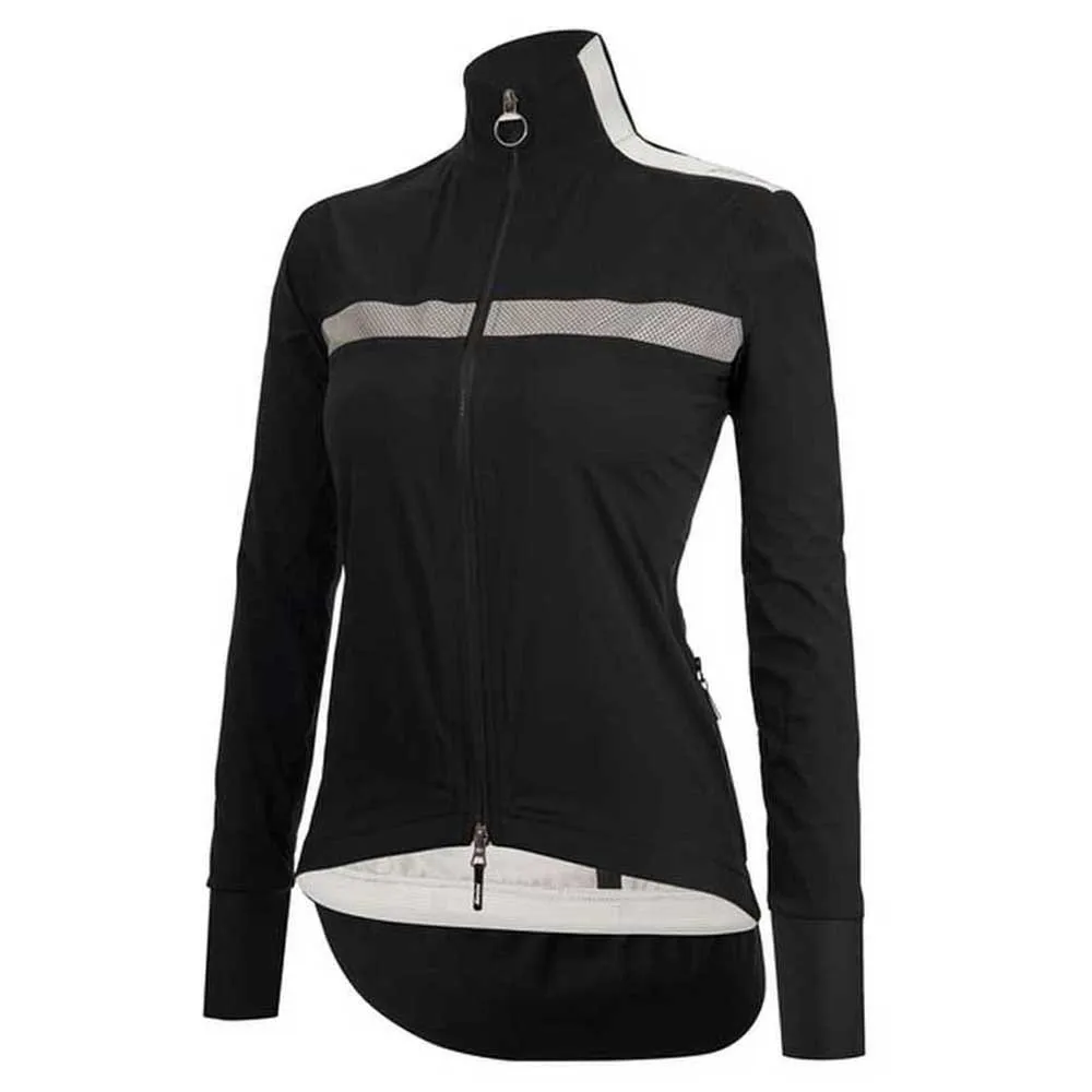 – High reflex, perforated fabric insert on the chest and rear. High reflex Santini branding on shoulder and back tail.