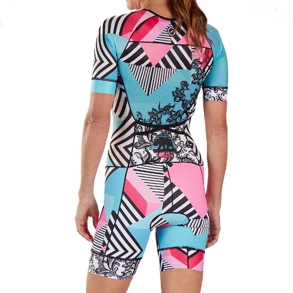 For maximum comfort on race day, the Tri LTD Racesuit delivers. Aero-cut with textured sleeves to reduce surface tension and increase speed on the bike. BYOB – bring your own bra for a custom fit. Sublimated Italian fabric helps you stay dry and comfortable while providing enhanced breathability. Integra SBR 2D pad construction provides support where you need it most. Race in style and comfort.